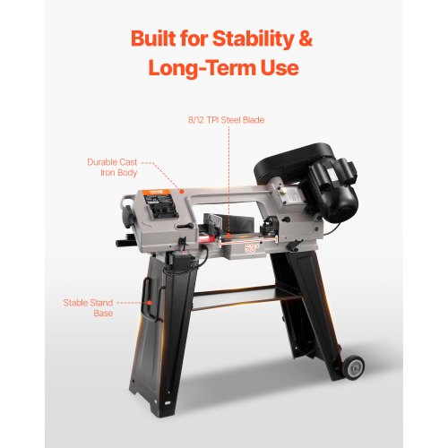 Metal Horizontal Band Saw 4 in x 6 in 550W Motor Variable Speed Bandsaw 110VVersatile Cutting AssistantEffortless CuttingBuilt to LastUser-Friendly DesignEnhanced SecurityEasy MobilityPower Cord Length: 63 in/1.6 m,Blade Teeth: 8/12 TPI,Blade Length: 53 in/1346 mm,Voltage: AC110V 60Hz (US), AC220V 50Hz (EU),Item Model Number: BS-115,Rectangular Cutting Size: 4 x 6 in,Explosion-Proof Wheels: 2,Miter Vise Adjustment Angle: 0-45°,Item Dimensions: 33.9 x 16.1 x 53.2 in/860 x 410 x 1350 mm,Power: 550W,Item Weight: 105.4 lbs/47.8 kg,Max Speed: 200 FPM (US), 50 m/min (EU)