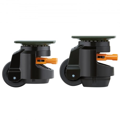 VEVOR Leveling Casters, Set of 4, 2200 lbs Total Load Capacity, 2.5 inches, Heavy Duty with Upgraded Handle Design, 360 Degree Swivel Caster Wheels, Adjustable Casters with Feet for Workbench, MachineFlexible AdjustmentDitch the ShakesGlide Don't StrideHeavy-Duty HeroesJack-of-All-TradesSilent Dual Ball BearingsCaster Diameter: 2.5 in / 63.5 mm,Number of Casters: 4,Installation Height: 4.01 in / 102 mm,Item Model Number: GD-80FD,Product Weight: 11.02 lbs / 5 kg,Material: Nylon,Caster Width: 1.1 in / 28 mm,Caster Axle Diameter: 0.46 in / 11.8 mm,Product Size: 4.82 x 3.54 x 4.01 in / 122.5 x 90 x 102 mm,Max Load Per Caster: 550 lbs / 250 kg