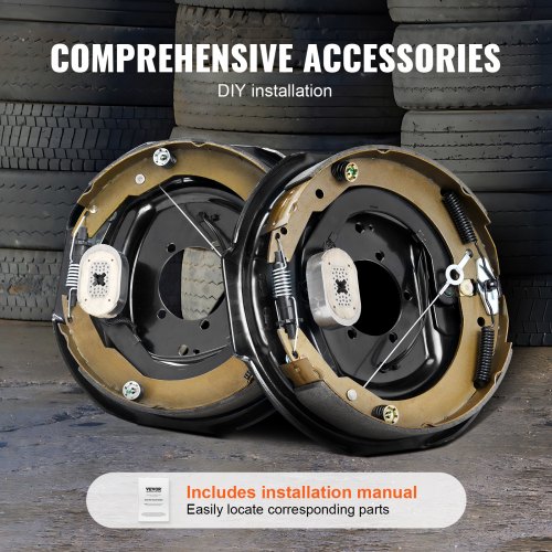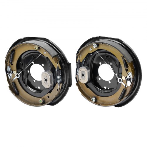 VEVOR Electric Trailer Brake Assembly, 12" x 2", 1 Pair Self-Adjusting Electric Brakes Kit for 7000 lbs Axle, 5-Hole Mounting, Backing Plates for Braking System Part Replacement (1 Right + 1 Left)Self-Adjusting BrakeEasy InstallationLonger LifespanWide ApplicationSuperior PackagingChoices GaloreSet Includes: Single Set (2 Brakes),Material: SPHC + Q235,Brake Pad Adjustability: Self-Adjusting Feature,Magnetic Force: ≥600N,Applicable Trailer Weight: 7000 lbs,Magnet Size: 12",Friction Coefficient: 0.48,Brake Size: 12" x 2",Product Size: 13.82" x 2.81",Flange Stud Count: 5,Item Model Number: BF12-Z02A*2,Product Weight: 29.63 lbs,Lifespan: ≥30,000 km,Voltage/Current: DC12V/2.8-4.2A,Brake Pad Material: Asbestos-Free Semi-Metallic,Brake Pad Size: 1.97" x 0.19"