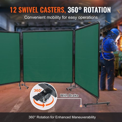 VEVOR Welding Screen with Frame, 6' x 6' 3 Panel Welding Curtain Screens, Flame-Resistant Vinyl Welding Protection Screen on 12 Swivel Wheels (6 Lockable), Moveable & Professional for Workshop, GreenPremium Flame-Resistant MaterialEasy MovementStable StructureSuperior UV ProtectionWide ApplicationsEasy Cleaning and MaintenanceProtection Level: 6- Level UV Protection,Single Screen Dimensions: 6 x 6 ft / 1.8 x 1.8 m,Number of Segments: 24,Color: Green,Item Model Number: XU-2316,Net Weight: 46.4 lbs / 21.06 kg,Main Material: Flame-Retardant Vinyl