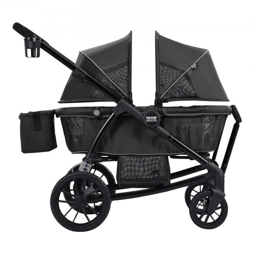 VEVOR All-Terrain Stroller Wagon, 2 Seats Foldable Expedition 2-in-1 Collapsible Wagon Stroller, Includes Canopy, Parent Organizer, Snack Tray & Cup Holders, 55lbs for Single Seat, BlackDouble SeatingEasy StorageComfortable SeatingSmooth RideMulti-Functional StrollerSafe TravelWeight Capacity: 55 lbs / 25 kg,Model: D005,Product Dimensions: 47.2 x 27.2 x 42.1 inch / 1200 x 690 x 1070 mm,Net Weight: 39 lbs / 17.7 kg,Main Material: Carbon Steel