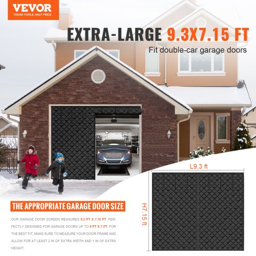 VEVOR Garage Door Screen for Winter 9.28 x 7.15 ft Garage Door Insulation KitExtra-Large Size Garage Door Insulation KitAdvanced Insulation TechnologyMagnetic Seal SystemWeighted Bottom DesignEasy InstallationVersatile Year-Round ComfortSize: L 9.3 x H 7.15 ft,Item Model Number: 9.3X7.15 FT,Edge Fabric: 300D Oxford Fabric,Magnets: 48 Magnets,Net Weight: 6.06 lbs / 2.75 kg,Product Size: 9.28 x 7.15 ft / 283 x 218 cm,Effective Size: 9.02 x 7.02 ft / 275 x 214 cm