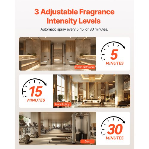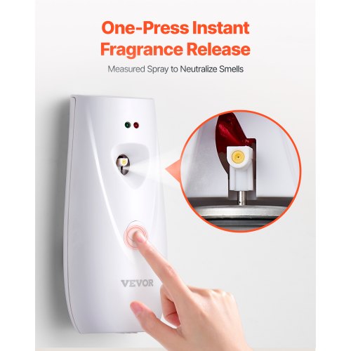 VEVOR Automatic Air Freshener Spray Dispenser, 4-Pack, Wall Mounted or Free Standing, Battery Operated, Multiple Time Settings for Home, Indoor, Bathrooms, Offices, Hotels, Commercial Places, White4-Piece Air Freshener Dispenser SetCompatible with Various Fragrance CansCustomizable Timed Sprays All Day LongInstantly Neutralize SmellsFit for Any SpaceStylish and Space-Saving DesignMax Compatible Size: Φ2.56 x 4.41 in / Φ65 x 112 mm,Product Type: Air Freshener Spray Dispenser (4-Piece Set),Item Model Number: ADS05,Product Weight: 2 lbs / 0.87 kg,Rated Power: 0.35W,Power Source Type: 2 AA Batteries(NOT Included),Individual Product Weight: 0.48 lbs / 0.218 kg,Main Material: PP,Rated Voltage: DC 3V