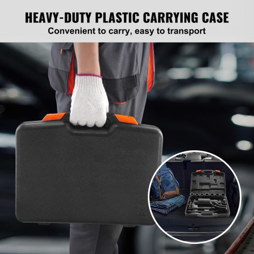 VEVOR Torque Multiplier, 1 Inch Drive Lug Nut Wrench/Multiplier Heavy Duty Torque Multiplier Wrench Set, 1:64 6,800N.m Lug Nut Remover, Includes 8 Sockets (24-38mm) and Storage CaseOutstanding PerformanceDurable StructurePortable ToolboxAnti-slip HandleWide Range of ApplicationsEffort-Saving LeverTorque Multiplier Ratio: 1:64,Case Sizes : 15.75 x 3.74 x 12.40in / 400 x 95 x 315mm,Torque Output End Square Head Size: 1"/25.4x25.4mm,Maximum Output Torque: 6800N.m,Torque Input End Square Head Size: 1"/25.4x25.4mm,Item Model Number: BD-64D-A,Surface Treatment: Spray Coating,Material: High-Quality Alloy Steel,Net Weight: 25.35lbs / 11.5kg
