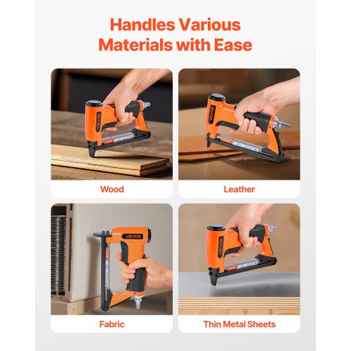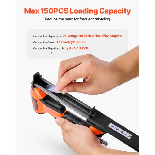 VEVOR Pneumatic Staple Gun, 21 Gauge Air Upholstery Stapler for 80 Series Fine Wire Staples 1/2" Crown 1/4"-5/8" Length, Max 150PCS Loading Air Staple Gun for Upholstering, Woodworking, DIY Projects<br/>Lightweight Body<br/>Large Loading Capacity<br/>More Details<br/>Multi-Purpose Uses<br/>Durable Material<br/>Wide Applications<br/>Operating Pressure: 70 - 100 PSI,Staple Gun Type: 21-Gauge,Compatible Staple Length: 1/4 - 5/8 inch,Magazine Capacity: Max 150PCS,Item Model Number: MT8016,Compatible Crown Width: 1/2 inch,Air Inlet Size: 1/4" NPT,Compatible Staples: 80 Series Fine Wire Staples,Product Dimensions: 8.66 x 5.71 x 1.77 inch / 220 x 145 x 45 mm,Net Weight: 2.2 lbs / 1 kg,Main Material: Aluminum Alloy