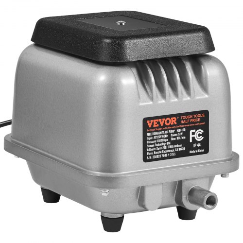 VEVOR Linear Air Pump, 90L/Min Air Flow Septic Aerator Pump, Aeration System for 1/4 Acre 10 FT Deep Ponds, Water Gardens, Waste Treatment, Septic Tanks, Aquariums, Seafood Restaurants, Fish FarmsPowerful PerformanceRobust High Flow DesignEffortless Installation and OperationSmart and Practical DesignVersatile ApplicationsCompact SizeMaximum Power: 51W,Outlet Pressure: 0.028 Mpa,Waterproof Rating: IP44,Airflow Rate: 90 L/min,Voltage: AC120V/60Hz,Materials: Aluminum Alloy + ABS,Item Model Number: HJB-100,Product Dimensions: 9.4 x 7.3 x 7.9 inches/238 x186 x 200 mm,Net Weight: 13.9 lbs /6.3 kg