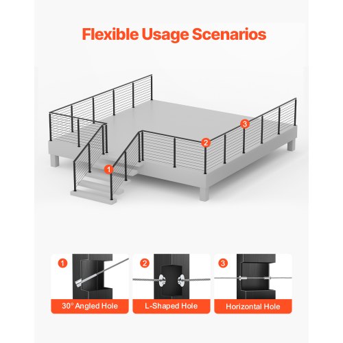 VEVOR 4-Pack Cable Railing Post, 36x2x2 In Horizontal-Hole Deck Railing Post with Pre-Drilled Holes, Stainless Steel Cable Rail Post with Horizontal and Curved Bracket, Black, 4JZLGZXHS914MY65M001V0Horizontal Hole Railing Post4 Thoughtful HighlightsEasy to InstallFlat and Curved SupportsMulti-Scene ProtectionBuilding Code-Compliant SpacingNumber of Holes: 10,Net Weight(Include Accessories): 22.04 Ibs/10kg (±3%),Color: Black,Item Model Number: HR-002,Quantity: 4,Railing Post Spacing: Suitable for up to 4ft,Main Material: SUS304 Stainless Steel
