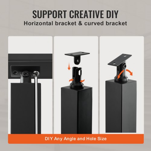 VEVOR Cable Railing Post, 36" x 2" x 2" Steel Level Deck Railing Post Without Holes, SUS304 Stainless Steel Cable Rail Post, Stair Handrail Post with Horizontal and Curved Bracket, 1-Pack, BlackHoleless Railing PostSturdy and DurableEasy InstallationFlat and Curved BracketsVersatile ProtectionStylish AppearanceNumber of Holes: No Holes,Net Weight(Include Accessories): 5.51 lbs/2.5kg (±3%),Color: Black,Item Model Number: HR-008,Railing Post Spacing: Suitable for up to 4ft,Main Material: SUS304 Stainless Steel