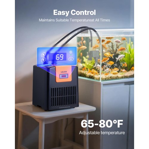 Aquarium Chiller 52 Gallon 1/10 HP Water Chiller Hydroponics Fish Tank<br/>Power Button<br/>Sturdy Suction Cup<br/>Clear Screen Display<br/>Easy to Clean<br/>Wide Application<br/>Easy Installation<br/>Recommended Max. Cooling Water Volume: ≤52gal (approx.200L),Cooler: Pure Titanium Cooler,Noise: ≤60 dB,Refrigerant: R290,Item Model Number: CL280,Recommended Water Circulation Flow Rate: ≥1200L/H,Rated Power: 0.1HP,Item Dimensions: 12.4 x 11.81 x 15.59 inch / 315 x 300 x 396 mm,Temperature Control Range: 65-80℉,Net Weight: 30.86 lbs / 14 kg,Main Material: PP + ABS Plastic