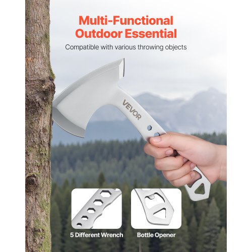Throwing Axes and Tomahawks 3 Pack Hatchet Axes and 3 Pack Knives Throwing SetRugged Stainless Steel BuildMore Than an AxeSecure Nylon Sheath ProtectionGift-Ready PackagingVersatile for Any SettingOptimized for Precision & DurabilityTotal Axe Length: 10.2 in / 259.1 mm,Total Knife Length: 7.5 in / 190.5 mm,Color: Stainless Steel Satin Finish,Knife Dimensions: 7.5 x 1.26 x 0.2 in / 190.5 x 32 x 4.0mm,Throwing Axes Set Contents: 3 Sets,Axe Features: Handle with Bottle Opener and Wrench Hole,Axe Dimensions: 10.2 x 4.9 x 0.2 in / 260 x 125 x 4mm,Axe Sheath: Black Nylon,Item Model Number: DTTZF4SH,Knife Sheath: Black Nylon,Lifespan: 1 year,Net Weight: 2.58 lbs / 1.17 kg,Main Material: Stainless Steel 3Cr13