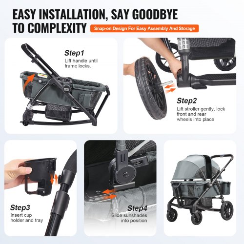 VEVOR All-Terrain Stroller Wagon, 2 Seats Foldable Expedition 2-in-1 Collapsible Wagon Stroller, Includes Canopy, Parent Organizer, Snack Tray & Cup Holders, 55lbs for Single Seat, Dark Grey/BlackDouble SeatingEasy StorageComfortable SeatingSmooth RideMulti-Functional StrollerSafe TravelWeight Capacity: 55 lbs / 25 kg,Model: D005,Product Dimensions: 47.2 x 27.2 x 42.1 inch / 1200 x 690 x 1070 mm,Net Weight: 39 lbs / 17.7 kg,Main Material: Carbon Steel
