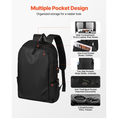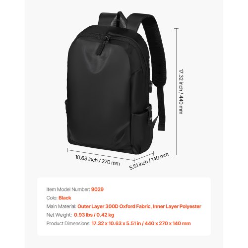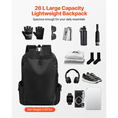 Lightweight Backpack 26 L Hiking Backpack Fits 15.6 in Laptop (Black)<br/>Lightweight Backpack<br/>Organized Storage<br/>Multifunctional Design<br/>Comfortable and Breathable<br/>Versatile Use<br/>Dual Zipper Design<br/>Color: Black,Item Model Number: 9029,Product Dimensions: 17.32 x 10.63 x 5.51 in / 440 x 270 x 140 mm,Net Weight: 0.93 lbs / 0.42 kg,Main Material: Outer Layer 300D Oxford Fabric, Inner Layer Polyester