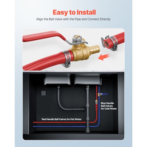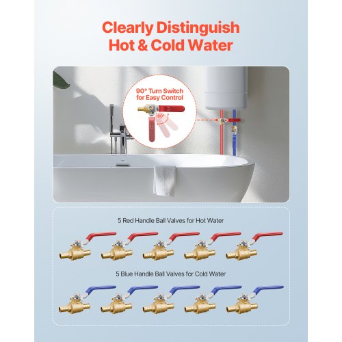 PEX Ball Valve 10 Pieces 1/2 in PEX Brass Ball Valve Full Port Brass Ball ValveSolid ConstructionClear IdentificationEasy InstallationSmooth FlowWide ApplicationBrass MaterialSwitching Angle: 90°,Color: Brass,Connection Type: PEX,Item Model Number: QF-11,Quantity: 10 PCs (5 Red Handle Ball Valves, 5 Blue Handle Ball Valves),Max Working Pressure: 400 PSI,Product Dimensions: 4.72 x 0.91 x 1.89 in / 120 x 23 x 48 mm,Net Weight: 2.43 lbs / 1.1 kg,Main Material: Lead-Free Brass,Applicable Size: 1/2 in
