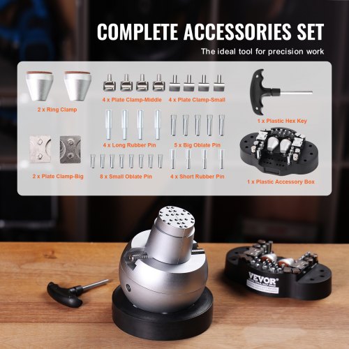 VEVOR Ball Vise, 5" Engraving Setting Tool, 360° Rotation Engraving Block Vise, 35 PCS Attachment Jewelry Engraving Block Tools Standard Block for Gemstone Inlay and Small-Scale EngravingExceptional Materials and CraftsmanshipProfessional AccessoriesCraft PerfectionRotating DesignVersatile ApplicationsAdjustable Jaw OpeningNet Weight (Including All Accessories): 20.3 lbs / 9.2 kg,Jaw and Ball Material: Steel,Item Model Number: JH-N5YC001BP,Surface Treatment: Chrome Plating,Product Max Size (Base + Installed Ball): 5.7 x 5.7 x 6.7 in / 145 x 145 x 170 mm,Ball Diameter: 5 in / 127 mm,Base Material: Rubber,Maximum Opening: 3.86 in / 98 mm