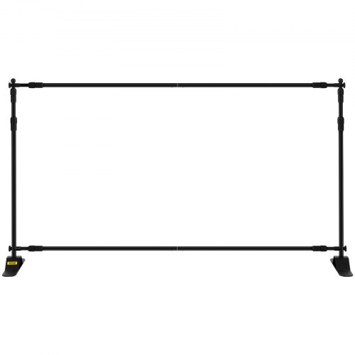VEVOR Telescopic Backdrop Banner Stand 8' x 8' Banner Stand Adjustable Step and Repeat Backdrop Banner Stand Retractable Banner Stand with Carrying Bag (8 ft)Heavy-Duty Aluminum FrameAdjustable Height & WidthFast & Hassle-Free AssemblyLightweight & PortableStable Base SupportFor Various OccasionsWidth Range: 4.6-8 ft/140-240 cm,Tube Wall Thickness: 0.05"/1.2 mm,Load Capacity: 4.4 lbs/2 kg,Height Range: 3.6-8 ft/110-240 cm,Base Size (L x W): 17.5" x 3"/44.5 x 7.5 cm,Color: Black,Model: ZSJ-8x8,Min Graphic Size (W x H): 4.6 x 3.6 ft/ 140 x 110 cm,Product Weight: 12.8 lbs/5.8 kg,Frame Material: Aluminum,Max Graphic Size (W x H): 8 x 8 ft/240 x 240 cm,Base Material: Iron