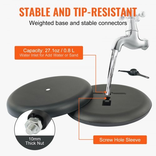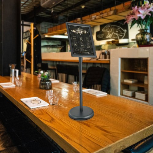 VEVOR Pedestal Sign Holder, 8.5 x 11 Inch Vertical and Horizontal Adjustable Poster Stand, Heavy-Duty Floor Standing Sign Holder with Round Base for Display, Advertisement, and Outdoor, BlackWater-Filled Sign StandAdjustable HeightStable BaseBuilt to LastEasy to Replace PostersEasy Installation and DisassemblyOuter Frame Size: 12.2" x 9.8" x 2.0" / 310 x 248 x 52 mm,Water Capacity: 27.1 oz / 0.8 L,Base Diameter: 9.8" / 250 mm,Suitable Poster Size: 8.5" x 11" / 279 x 216 mm,Inner Frame Size: 10.2" x 7.8" / 260 x 197 mm,Item Model Number: SW-01,Product Weight: 3.7 lbs / 1.7 kg,PVC Sheet: 0.4 T transparent,Adjustable Height (Vertical Frame): 32.3" - 49.2" / 820 - 1250 mm,Main material: Aluminum,Product Size: 49.2" x 9.4" x 9.8" / 1250 x 238 x 250 mm