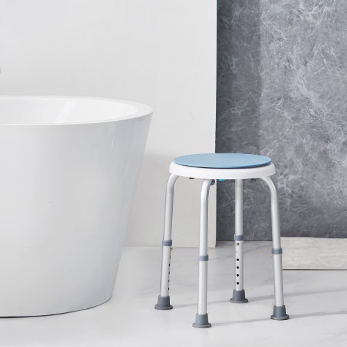 VEVOR Shower Chair for Inside Shower, 360 Degree Swivel Shower Seat, Adjustable Height Shower Stool, Non-Slip Bench Bathtub Seat Stool for Elderly Disabled Adults Handicap, 300 lbs CapacitySafety Support for EveryoneDurable Shower StoolAdjustable Height & 360° Swivel SeatSecure Seating SolutionVersatile Bath AssistantReinforced Aluminum Alloy TubingHeight Adjustment: 6-level adjustment,Adjustable Height Range: 14.2-19 inches/360-485 mm,Static Load Capacity: 300 lbs / 136.1 kg,Item Model Number: 103C,Material: Aluminum Alloy #6063 + PP,Product Dimensions: 12.6 x 12.6 x 19.1 inch/320×320×485 mm,Net Weight: 3.6 lbs/1.65 kg (including all accessories)