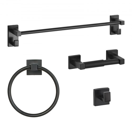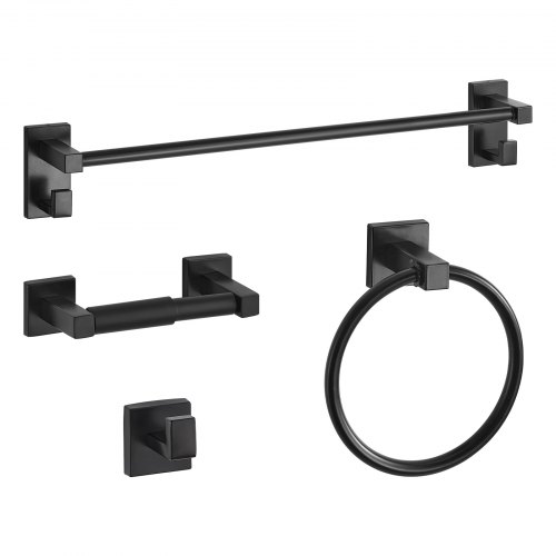 VEVOR 4pcs Bathroom Hardware Accessories Set 24-inch Towel Bar Set Matte Black<br/>Bathroom Accessories Set<br/>Multi-Functional Storage<br/>Premium Material<br/>Easy Installation<br/>Wide Application<br/>Stable Wall Mount<br/>Installation Method: Wall-Mounted with Drilling,Weight Capacity: Max Load Capacity 11–22 lbs / 5–10 kg,Item Model Number: 822149,Towel Bar Dimensions: 23.43 x 3.94 x 3.15 inch / 595 x 100 x 80 mm,Material: SUS201,Net Weight: 2.25 lbs / 1.02 kg