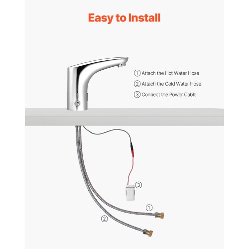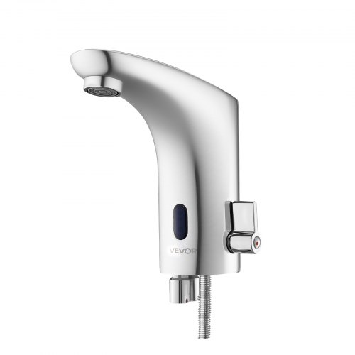 VEVOR Touchless Bathroom Sink Faucet Chrome Plated Single Handle 9/16in Pipe<br/>Touchless Operation<br/>Universal Fit<br/>Adjustable Temperature<br/>Reliable Performance<br/>Versatile Application<br/>Effortless Maintenance<br/>Hose Connector Size: 9/16 in / 14.3 mm,Spout Height: 4.9 in / 12.5 cm,Hose Length: 23.6 in / 600 mm,Sensing Distance: Up to 6.3 in / 16 cm,Color: Silver,Item Model Number: G222M,Maximum Flow Rate: 2.0 GPM / 7.6 L/min,Surface Treatment: Chrome Plated,Item Dimensions: 6.7 x 2.2 x 5.9 in / 170 x 55 x 150 mm,Net Weight: 3.1 lbs / 1.45 kg,Main Material: Brass,Power Supply: DC 6V (4 x AA alkaline batteries, not included)