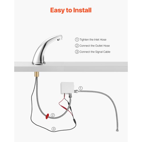 VEVOR Touchless Bathroom Sink Faucet Cold Faucet Chrome Plated 9/16in G233M<br/>Touchless Operation<br/>Universal Fit<br/>Battery Powered<br/>Reliable Performance<br/>Versatile Application<br/>Effortless Maintenance<br/>Hose Connector Size: 9/16 in / 14.3 mm,Spout Height: 4.3 in / 11 cm,Hose Length: 19.7 in / 500 mm,Sensing Distance: Up to 6.3 in / 16 cm,Color: Silver,Item Model Number: G233M,Maximum Flow Rate: 2.0 GPM / 7.6 L/min,Surface Treatment: Chrome Plated,Item Dimensions: 6.3 x 1.8 x 4.9 in / 160 x 45 x 125 mm,Net Weight: 2.1 lbs / 1.0 kg,Main Material: Zinc Alloy,Power Supply: DC 6V (4 x AA alkaline batteries, not included)