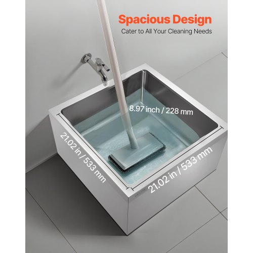VEVOR Stainless Steel Floor Mop Sink 24 x 24 x 13 in with Wall-Mounted Bracket<br/>24-Inch Mop Sink<br/>Faster Drainage<br/>Easy to Clean<br/>Simplified Cleaning<br/>Wide Range of Use<br/>Versatile Utility Sink<br/>Sink / Panel Thickness: 0.04 inch / 1.2 mm,Item Model Number: 24-24-13,Material: SUS304 Stainless Steel,Surrounding Panel Thickness: 0.03 inch / 1.0 mm,Product Dimensions: 24.02 x 24.02 x 12.99 inch / 610 x 610 x 330 mm,Net Weight: 30.31 lbs / 13.75 kg,Inner Basin Dimensions (mm): 21.02 x 21.02 x 8.97 inch / 533 x 533 x 228 mm