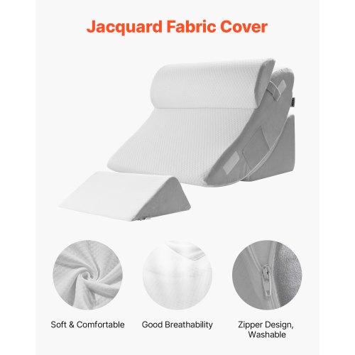 Orthopedic Bed Wedge Pillow 4 Pcs Adjustable for Back Leg Neck GERD SleepEnhanced SleepPremium Quality MaterialsMulti-Purpose DesignMeet Multiple NeedsRelieve Multiple DiscomfortsLong-Lasting DurabilityCover Color: White+Gray,d=19 in / 475 mm:,Support Pillow/Triangle Pillow/Leg Elevation Pillow: 20D High-Density Foam,a=29 in / 740 mm:,Filling Material:,g=9 in / 220 mm:,Product Size:,i=22 in / 560 mm:,e=9 in / 235 mm:,Item Model Number: KD006,Cover Material: Jacquard Fabric,Half-Moon Pillow: 30D High-Density Gel Memory Foam,f=22 in / 560 mm:,h=3 in / 80 mm:,Pillow Type: Support Pillow+Triangle Pillow+Leg Elevation Pillow+Half-Moon Pillow,Net Weight: 7.1 lbs / 3.2 kg,b=22 in / 560 mm:,c=11 in / 270 mm: