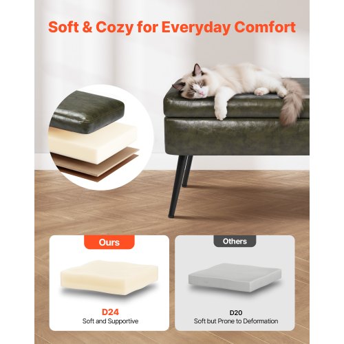 PU Leather Storage Ottoman Bench Shoe Seat with Storage & Metal Legs Green<br/>Premium Leather Upholstery<br/>Sturdy Leg Support<br/>High-Density Sponge Cushioning<br/>Versatile for Any Space<br/>Multiple Colors & Sizes Available<br/>Easy to Clean<br/>Leg Material: Iron,Materials: Leather + Sponge + Iron Tubes + Engineered Wood,Dimensions: D x W x H: 15.7 x 47.2 x 17.7 in / 400 x 1200 x 450 mm,Seat Top Thickness: 3.1 in / 80 mm,Main Color: Green,Weight Capacity: 660 lbs / 300 kg,Item Model Number: CWD0115CA-KD-GREEN,Surface Treatment: Black Powder Coating,Leg Color: Black,Seat Cushion: 50 mm / 2 in Thick, D24 Foam,Seat Base Thickness: 5.5 in / 140 mm,Net Weight: 26.5 lbs / 12 kg (including all accessories),Fabric: PU Leather,Side Cushions: D20 + D16 Foam