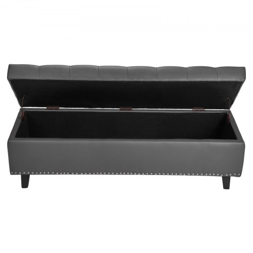 Button-Tufted Storage Ottoman Bench PU Leather Bench with Wood Legs Gray<br/>Premium Leather Upholstery<br/>Sturdy Leg Support<br/>High-Density Sponge Cushioning<br/>Versatile for Any Space<br/>Multiple Colors & Sizes Available<br/>Easy to Clean<br/>Leg Material: Rubber Wood,Color: Gray,Materials: Leather + Sponge + Rubber Wood + Engineered Wood,Tolerance: ±5%,Dimensions: D x W x H: 16.33 x 51.37 x 17.33 in / 415 x 1305 x 440 mm,Seat Top Thickness: 2.71 in / 69 mm,Weight Capacity: 660 lbs / 300 kg,Item Model Number: CWD0117CA-KD-GRAY,Surface Treatment: Black Paint,Seat Cushion: 50 mm / 2 in Thick, D24 Foam,Seat Base Thickness: 9.45 in / 240 mm,Net Weight: 35.1 lbs / 15.9 kg (including all accessories),Fabric: PU Leather,Side Cushions: D20 + D16 Foam