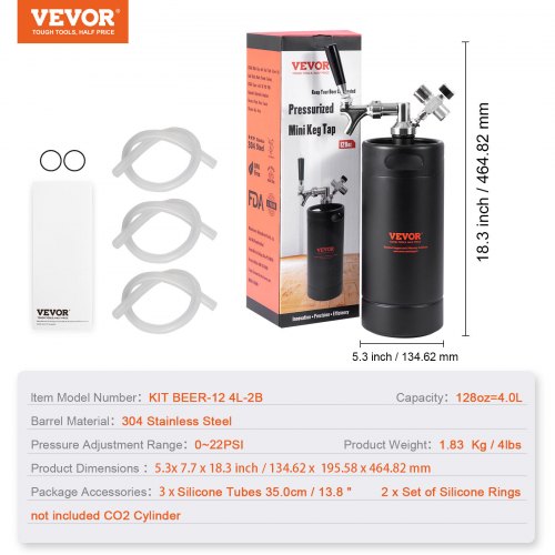 VEVOR Beer Growler Tap System, 128Oz 4L Mini Keg, 304 Stainless Steel Pressurized Beer Growler, Keg Growler with Pressure Display, CO2 Regulator Faucet, Leak-Proof Ring For Draft, Homebrew, Craft BeerPortable SizeVacuum SealingRefrigeration and InsulationPressure AdjustmentSealed Leak-proofExquisite AppearanceFaucet Handle Material: Rubberwood,Capacity: 128oz / 4L,Pressure Adjustment Range:0~30PSI:,Item Model Number: KIT BEER-12 4L-2B,Product Weight: 1.83 Kg / 4 lbs