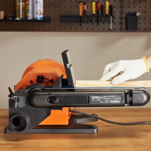 VEVOR Professional Belt Sander, 6" Disc Sander and 4 x 36 in. Belt Sander with 5A Induction Motor Cast Aluminum Worktable for Woodworking, Metalworking0-90° Tiltable BeltCast Aluminum WorktableEasy OperationWell-Crafted DetailsWide ApplicationsHigh Efficiency SandingVoltage: 120V 60Hz,Maximum Speed: 3450RPM,Item Model Number: BD4803,Product Weight: 36.3 lbs / 16.47kg,Dust Port Outer Diameter: 3.5'' / 63.5 mm,Sanding Disc Size: 6"/ 152.4 mm,Product Dimensions: 22.8'' x 19.1'' x 12.1'' / 580 x 485 x 308 mm,Current: 5.0 AMP,Sanding Disc Grit: 120#,Belt Size: 4”x 36"/ 100 x 914 mm