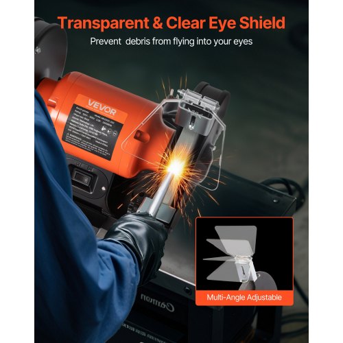 VEVOR Bench Grinder 8-inch Bench Grinder 350W 3450RPM High-Speed Table Grinders<br/>High-Speed Grinding Power<br/>Dual Grit Wheels<br/>Solid & Stable Build<br/>Thoughtful Details<br/>Efficient Grinding Performance<br/>High-Quality Motor<br/>Grinding Wheels Material: Brown Fused Alumina,Color: Orange + Black,Grinding Wheel Outer Diameter: 8 inch / 200mm,Product Dimensions: 15.8 x 9.8 x 11.8 inch / 400 x 250 x 300 mm,Body Material: Steel Plate,Rated Speed: 3450RPM ,Voltage: AC120V 60Hz ,Grinding Wheel Grit: 36-Grit (Left) / 60-Grit (Right) ,Item Model Number: MD200G-350,Rated Power: 350W,Rated Current: 3.0A,Net Weight: 24.3 lbs / 11 kg,Base Material: Die-Cast Aluminum
