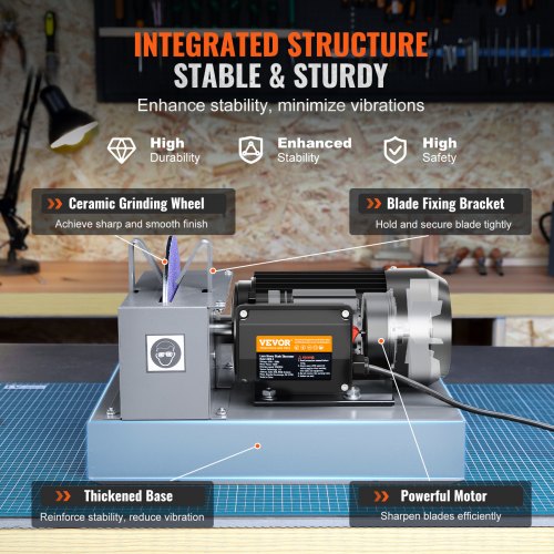 VEVOR Lawn Mower Blade Sharpener, 1HP 750W Lawnmower Blade Grinder with 9-inch Ceramic Grinding Wheel, Powerful Bench Mower Sharpening Machine for High/Low Lift Blades, Gator Blades, Flat BladesEffortless Blade SharpeningRock-Solid StabilityQuick and Easy SetupVersatile Blade CompatibilityEfficient and EffectiveExtra Spare Sandpapers IncludedVoltage/Frequency: AC120V 60Hz,Sandpaper Type: 60-Grit Ceramic Sandpaper,Grinding Wheel Size: φ9 inch / φ228.6mm,Item Model Number: JLD10-9,Product Weight: 40.01 lbs / 18.15 kg,Motor Power: 750W,Rated Current: 7.7A,Product Dimensions: 16.93 x 12.60 x 9.65 inch / 430 x 320 x 245 mm,Main Material: Q195