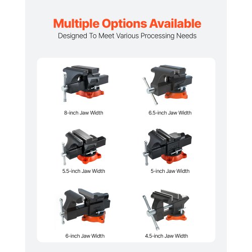 5.5" Bench Vise Multipurpose Heavy Duty Ductile Iron Swivel Locking BaseSuperior Strength & Toughness360° Rotating FlexibilityQuick Lock & ReleaseLong-Lasting PerformanceImproved Load-Bearing CapacityWide ApplicationSwivel Base: 360 Degree,Jaw Width: 5.5" / 140 mm,Max Jaw Opening: 5.5" / 140 mm (Forward), 7" / 180 mm (Reverse),Throat Depth: 2.8" / 73 mm,Pipe Jaw Capacity: Ф0.59-2.36" / Ф15-60 mm,Item Model Number: 9555,Anvil Size: 2.56 x 2.76" / 65 x 70 mm,Material: Ductile Cast Iron QT450, Carbon Steel Q235, Carbon Steel 45#,Product Dimensions (L x W x H): 12.20 x 5.51 x 6.69" / 310 x 140 x 170 mm,Net Weight: 20.51 lbs / 9.3 kg