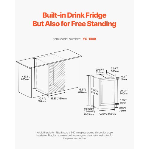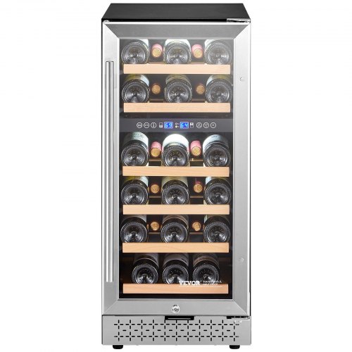 Wine Cooler 28 Bottle Dual Zone Mini Wine Fridge with Glass Door Temp ControlBuilt-in Wine CoolerPowerful Cooling SystemLow-noise & High-performanceFlexible InstallationVersatile for Any VenueEasy Touch, Precise ControlTemperature Control: Electronic Control,Item Dimensions (Without Handle): 14.96" x 23.0" x 33.6" / 380 x 585 x 855 mm,Configuration: Single Door, Double Zones,Key Feature: Wine Storage,Cooling Method: Air Cooling,Item Model Number: YC-100B,Maximum Capacity: 28 Bottles,Glass Type: Standard Tempered Glass,Item Dimensions (With Handle): 14.96" x 24.8" x 33.6" / 380 x 630 x 855 mm,Door Type: Stainless Steel Frame + Stainless Steel Handle,Adjustable Shelves: 6,Item Weight: 72.75 lbs / 33 kg