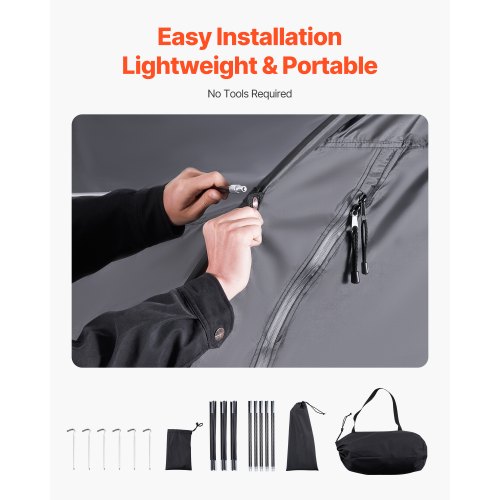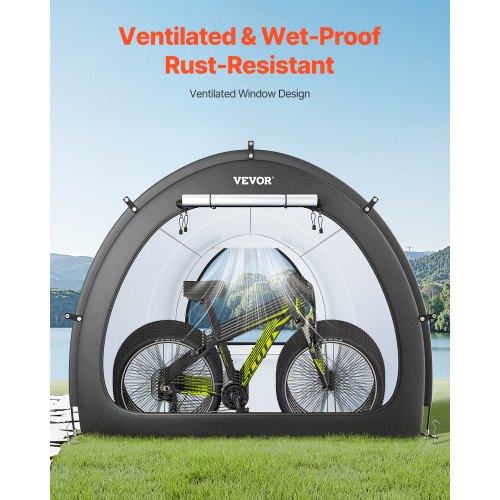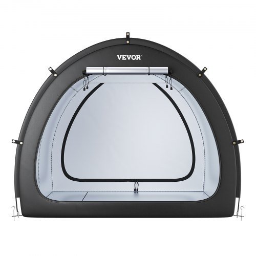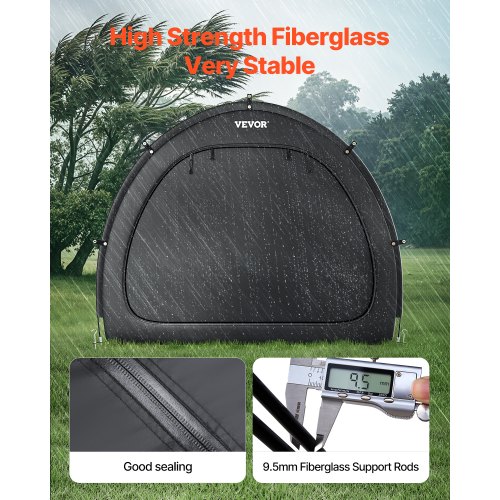 Outdoor Bike Storage Tent Fan-Shaped Waterproof Bike Tent for 5+ BikesPU4000mm WaterproofVentilated WindowHigh Quality ZipperHigh-Quality MaterialsWithstand Harsh WeatherPeace of MindShape: Fan-Shaped,Door Open Type: Front and Back Dual Opening,Capacity: 5+ Bicycles,Color: Black,Item Model Number: BYSKU7,Material: Oxford Fabric + Fiberglass Support Poles,Product Dimensions: 67.20 x 84.00 x 96.00 in (1706 x 2133 x 2438 mm),Net Weight: 6.20 kg / 13.67 lbs
