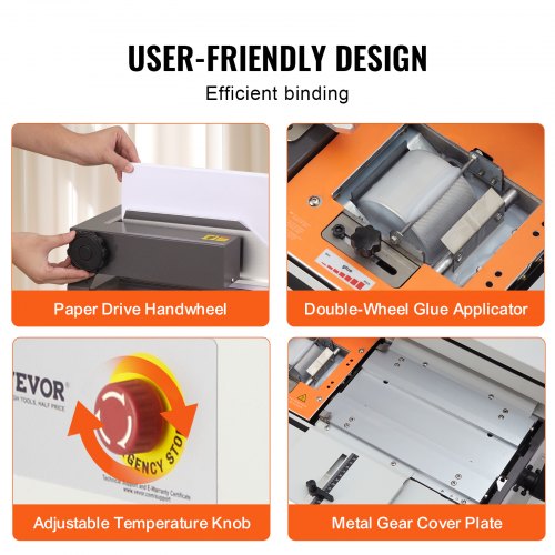 VEVOR Thermal Binding Machine, 400 Sheets Capacity Hot Glue Binding Machine, Thermal Book Binder 40mm Binding Thickness A3(Short Edge)/A4/A5 DocumentDurable and RobustEfficient HeatingHigh Capacity Binding MachineEasy BindingWide ApplicationDual Buzzer AlertMax Binding Length: 320 mm/12.60 in,Heating Time: 1 Hour/250 Books,Control Method: Mechanical Switch,Preheat Time: 20 min,Product Dimensions: 969 x 471 x 349 mm/38.15 x 18.54 x 13.74 in,Safety Protection: Reduces to 100° after 30 Mins of Standby,Display Method: LED Indicator,Compatible Paper Sizes: A3 (Short Edge) / A4 / A5,Binding Capacity: 400 Sheets,Item Model Number: B40M,Product Weight: 46 kg/101.41 lbs,Heating Method: Heating Tube,Heating Temperature: 170℃-200℃,Max Binding Thickness: 40 mm/1.57 in