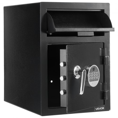 VEVOR 1.2 Cubic Feet Drop Safe Large Capacity 2 Tiers Drop Slot Safe Box Black<br/>210° Door Opening<br/>Metal Hinges<br/>Soft Velvet Lining<br/>Dual Alarm System<br/>Easy Installation<br/>Protective Packaging<br/>Distance from Lock to Door: 1.5 in / 4 cm,Mounting Holes: 4 on the bottom, 4 on the back,Lower Door Panel (W x H): 11.4 x 11.4 in / 29 x 29 cm,Capacity: 1.2 cu.ft,Door Opening Angle: 210°,Lower Compartment Depth: 17.3 in / 44 cm,Item Model Number: TD-SS508,Upper Door Panel (W x H): 11.4 x 4.7 in / 29 x 12 cm,Material: Q235 Steel + Velvet Lining,Net Weight (with all accessories): 74.7 lbs / 33.9 kg,Product Dimensions (D x W x H): 20 x 14 x 20 in / 50.8 x 35.5 x 50.8 cm