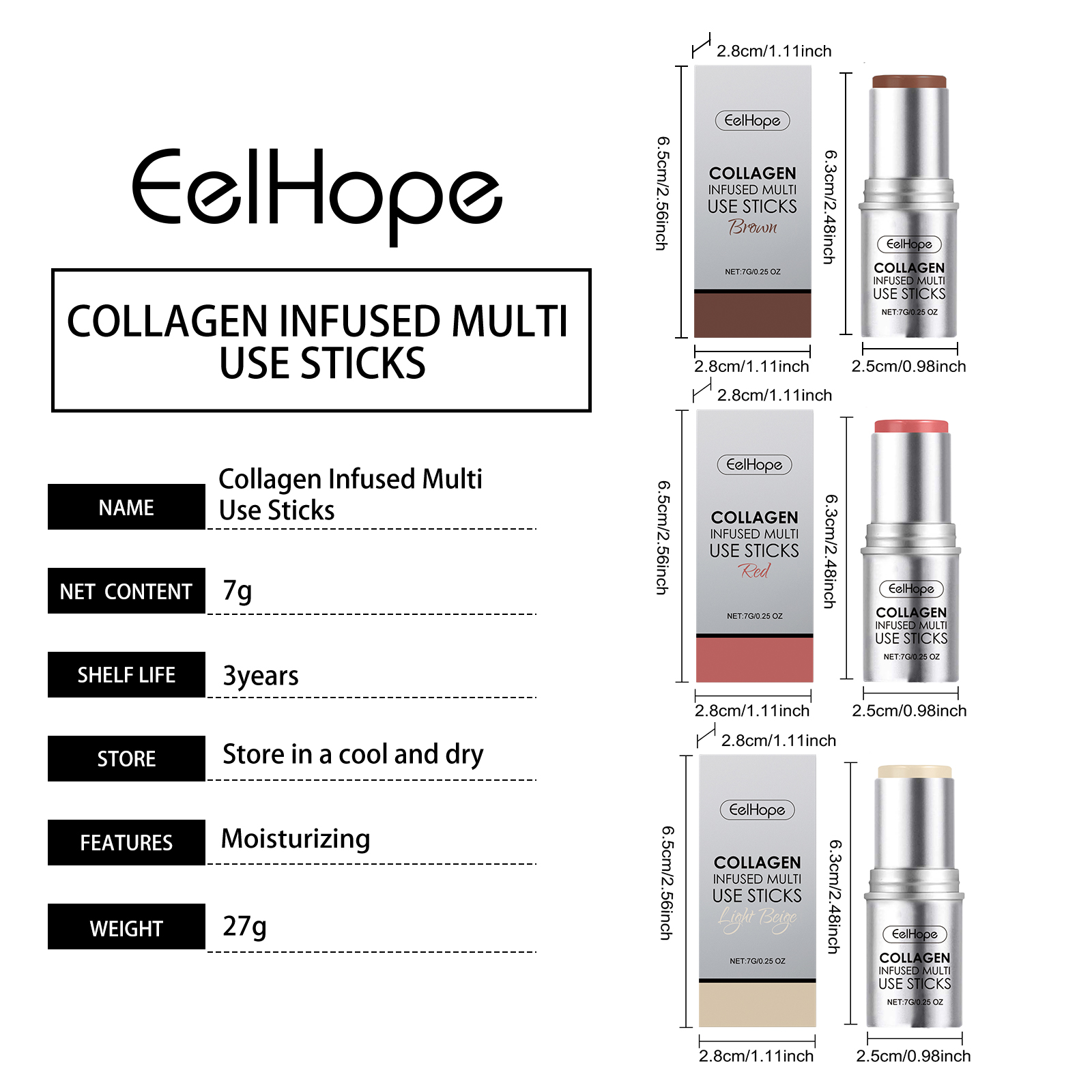 Our collagen bars contain mineral oil and polydimethylsiloxane. It can provide a soft shine and create a natural gloss effect. Contains glycerin and hyaluronic acid to help moisturize skin and keep makeup moisturized and smooth. The way to use it is simple: clean and dry your face and lips and apply an appropriate amount of the product to the skin around your lips and eyes, or take a small amount of the product and pat it gently and evenly on your cheeks. It is also easy to layer, from natural gloss to delicate gloss, creating a multi-layer makeup effect to suit different makeup needs. The handy stick design makes it easy to touch up makeup anytime, anywhere.
