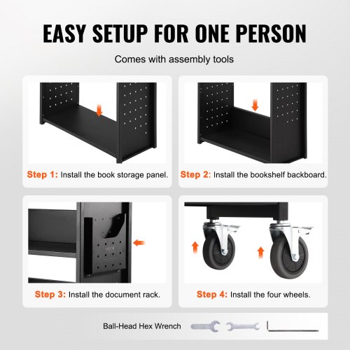 VEVOR Book Cart, 330 lbs Library Cart, 31.1" x 15.2" x 49.2" Rolling Book Cart, Single Sided L-Shaped Flat Shelves with 4-Inch Lockable Wheels for Home Shelves Office and School, Book Truck in BlackStrong and ReliableDurable Carbon SteelSmooth MovesEasy SetupVersatile and HandySafe and StylishShelf Spacing: 13.7 in/350 mm,Shelves: 3,Item Model Number: HXTC-L,Product Weight: 53.6 lbs/24.3 kg,Max Load Capacity: 110 lbs/50 kg (1 Shelf); 330 lbs/150 kg (3 Shelves),Surface Finish: Powder Coating,Material: Carbon Steel + Cold-Rolled Steel Plate,Product Size: 31.1 x 15.2 x 49.2 in/790 x 385 x 1250 mm