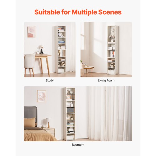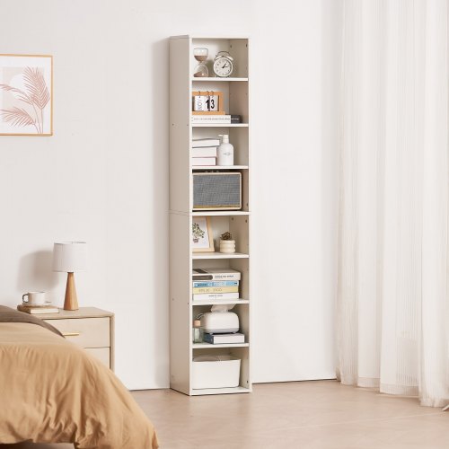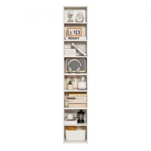 VEVOR 8 Tiers Narrow Bookshelf, 71 in Wooden Tall Open Bookcase with Height-Adjustable Shelf, Freestanding Display Storage Floor Bookcase Bookshelf for Library, Bedroom, Living Room, Office, White