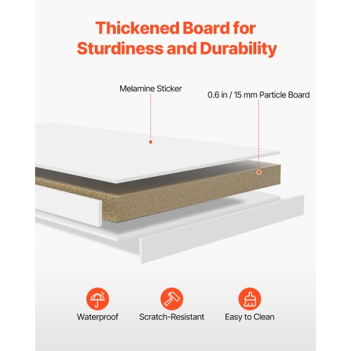 VEVOR Desktop Bookshelf, 1-Tier Desktop Storage Organizer, 37" x 9.4" x 28.7" Office Storage Rack Wood Display Shelf, Desktop Bookshelf Hutch with Anti-Slip Feet Pads, for Office, Home & Dorm, WhiteDesktop BookshelfOrganized StorageSturdy and DurableQuick and Easy SetupVersatile for Various SpacesScrew Hole Covers Included12.4" x 12.2" / 31.5 x 31 cm:,Back Panel Thickness: 0.1" / 3 mm,Color: White,9.8" x 4.3" / 24.9 x 10.9 cm:,Shelf Board Thickness: 0.6" / 15 mm,Product Size: 37.0" x 9.4" x 28.7" / 94 x 24 x 73 cm,Number of Shelves: 1,Other Details:,Weight Capacity: 143 lbs / 65 kg,Shelf Dimensions:,Anti-slip feet pads:,Item Model Number: KLBS-02,Anti-tip accessories:,Net Weight: 24.4 lbs / 11.05 kg,Main Material: Particle Board + Melamine Paper,9.8" x 7.3" / 24.9 x 18.5 cm: