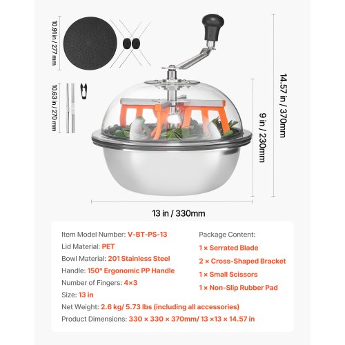 VEVOR Manual Bud Leaf Trimmer 13 in Bud Bowl Trimmer Hydroponic Trimming Machine<br/>Achieve Precise Trimming<br/>Versatile Trimming<br/>Comfortable Use<br/>Gentle on Buds<br/>Easy Operation<br/>Visible Trimming Process<br/>Bowl Material: 201 Stainless Steel,Blade Fingers: 4 × 3,Lid Material: PET,Item Model Number: V-BT-PS-13,Item Dimensions: 13 × 13 × 14.6 in / 330 × 330 × 370 mm,Weight: 5.73 lbs / 2.6 kg,Handle: 145° Aluminum Handle