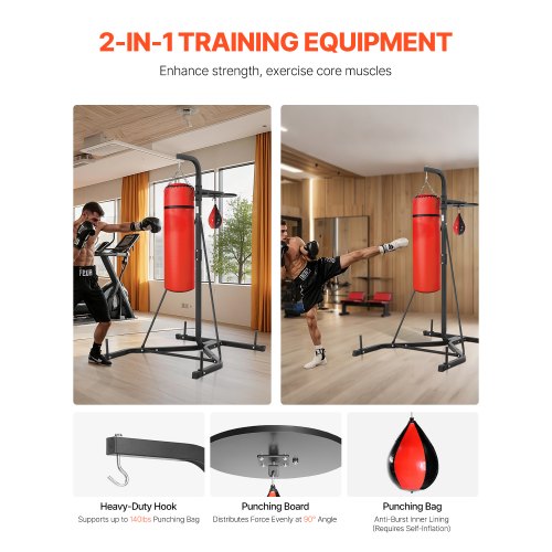 VEVOR 2 in 1 Punching Bag Stand, Steel Heavy Duty Workout Equipment, Adjustable Height Boxing Punching Bag and Speed Bag Stand, Freestanding Sandbag Rack, Holds Up to 140 lbs, for Home Gym Fitness