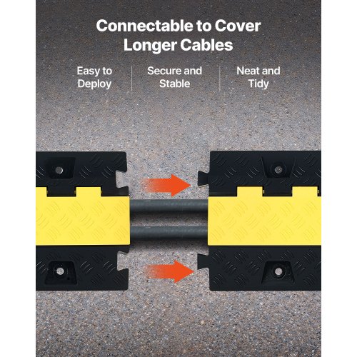 VEVOR Cable Protector Ramp TPU Cord Cover 22000 lbs/axle Capacity 2 Channel<br/>Non-Slip Surface<br/>Shock-Absorbing Design<br/>Large Cable Channel<br/>Wide Application<br/>Effective Deceleration<br/>Premium TPU + TPR Material<br/>Channel Size: 1.2 x1.1 in/31 x 28 mm ,Number of Channels: 2,Color: Black + Yellow,Item Model Number: CP-2U-3,Max Load Capacity: 22,000 lbs/9,979 kg (Axle),Quantity: 3 PCS,Material: TPU+TPR