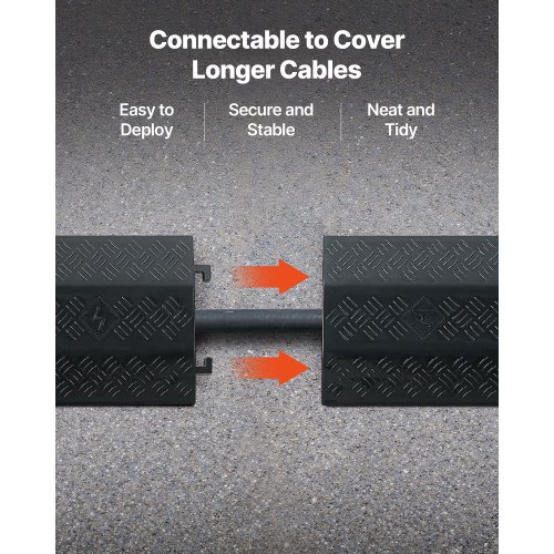 VEVOR Drop Over Cable Cover Heavy Duty Protector Ramp Floor Cord Cover 17500 lbs<br/>Non-Slip Surface<br/>Shock-Absorbing Design<br/>Large Cable Channel<br/>Wide Application<br/>Effective Deceleration<br/>PP Material<br/>Channel Size: 2.01 x 1.10 in/51 x 28 mm,Number of Channels: 2,Color: Black,Item Model Number: CP-P03,Max Load Capacity: 17,500 lbs/7,938 kg (Axle),Quantity: 1 Pack,Material: PP