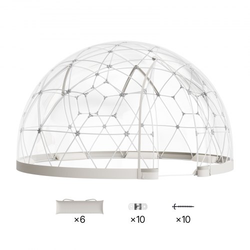 9.5x5.7 ft Garden Bubble Tent for 2-4 Person Outdoor Clear Geodesic Dome Window<br/>Clear Dome Tent for All Seasons<br/>360° Unobstructed Views<br/>Year-Round Protection<br/>Upgraded Structural Strength<br/>Comfort in Every Season<br/>Stylish & Functional Design<br/>Size: 9.5 ft,Color: White + Transparent,Material: PVC,Product Dimensions: 9.5 × 5.7 ft / 2900 × 1750 mm,Max Wind Resistance: 31 mph,Max Snow Load: 90 lbs,Main Materials: PVC Canopy, PC Poles, PBT Connectors,Capacity: 2-4 People,Item Model Number: GB-DOME-9.5,Base Edge Color: White Trim,Connector Type: Full Quick Connect,Height: 5.7 ft,Lifespan: 1 Year,Net Weight: 38.7 lbs / 17.55 kg (±3% tolerance, includes all accessories)