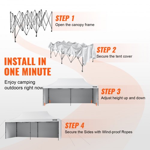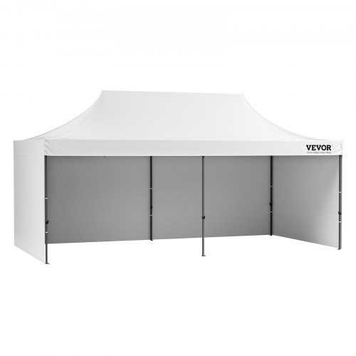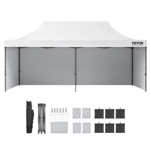VEVOR 10x20 FT Pop up Canopy with Removable Sidewalls, Instant Canopies Portable Gazebo & Wheeled Bag, UV Resistant Waterproof, Enclosed Canopy Tent for Outdoor Events, Patio, Backyard, Party, ParkingSealed Waterproof Cover4 Banner RingsAdjustable 3-Height Options3 in 1 Gazebo TentFollows You AnywhereBroad ApplicationsCover Color: White,Cover Material: 500D PU Silver Fabric,Frame Material: Carbon Steel Q195,3 Adjustable Height: 9.84, 10.2, 10.5,Fully Expanded Size: 10 x 20 FT / 304.8 x 609.6 cm,Net Weight: 85.1 lbs / 38.6 kg,Storage bag size: 63.4 x 16.5 x 16.5 in / 161 x 42 x 42 cm