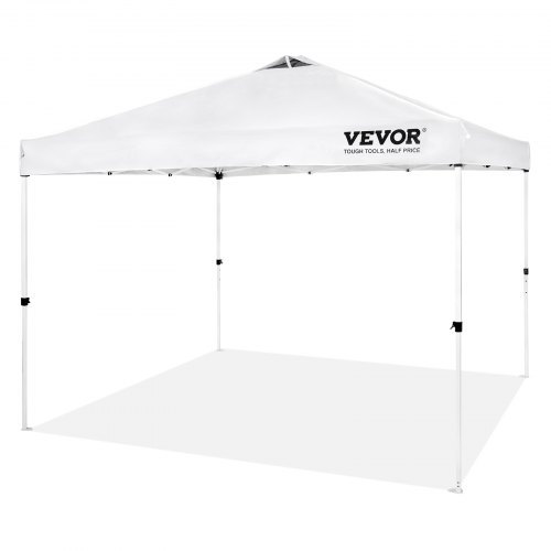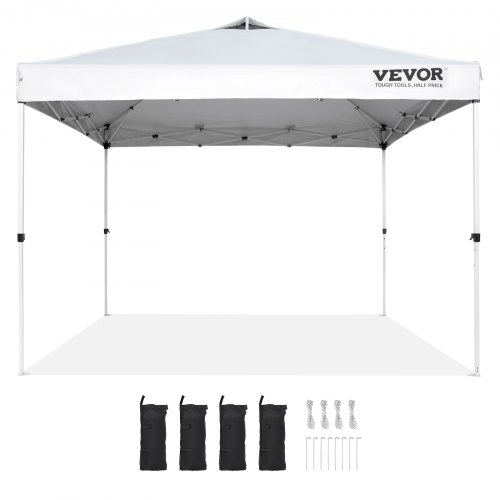 VEVOR Pop Up Canopy Tent, 10 x 10 ft, 250 D PU Silver Coated Tarp, with Portable Roller Bag and 4 Sandbags, Waterproof and Sun Shelter Gazebo for Outdoor Party, Camping, Commercial Events, WhiteSealed Waterproof CoverAdded 4 Banner RingsStrong Metal FramePremium 250D PU TarpTake it Anywhere10 x 10 FT Extra Large TentUnfold Size(L x W): 10 x 10 ft / 304.8 x 304.8 cm,Adjustable Frame Height: 106.3"/270 cm, 102.4"/260 cm, 98.4"/250 cm,Tarp Color: White,Frame Material: Carbon Steel Q195,Net Weight: 33.1 lbs / 15 kg,Bag Size: 47.2" x 8.3" x 8.3" / 1120 x 21 x 21 cm,Tarp Material: 250D PU Silver Coated Fabric