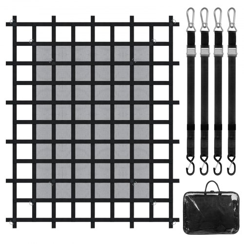 VEVOR Cargo Net Heavy Duty Cargo Net 72" x 57" Adjustable Buckles & S-HooksStrong Load-bearing CapacityWear-resistant & WeatherproofFlexible Adjustment & FixingTight Mesh ProtectionEasy Installation & UsageConvenient Organization & StorageS-Hook Inner Ring Diameter: 0.1 in / 30 mm,S-Hook Size: 4.1 x 1.6 in / 105 x 40 mm,Adjustable Strap Size: 13 - 59 in / 330 - 1500 mm,Carabiner Size: 3.9 x 1.9 in / 99 x 47 mm,Max Tensile Capacity of Net: 1100 lbs / 500 kg,Hole Size: 5.5 x 5.5 in / 140 x 140 mm,Item Model Number: PPCN0072,Product Weight: 7.5 lbs / 3.4 kg,Material: PP Webbing + Stainless Steel D-rings 12 pcs,Cargo Net Size: 72 x 57 in / 1830 x 1450 mm,Product Dimensions: 76 x 60.2 x 0.4 in / 1930 x 1530 x 10 mm (Fully Expanded)