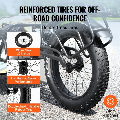 VEVOR Bike Cargo Trailer, 70 lbs Load Capacity, Heavy-Duty Bicycle Wagon Cart, Compact Storage & Quick Release Structure with Universal Hitch, 20" Wheels, Fits Most Bike Wheels, Carbon Steel FrameSpacious CapacityBuilt ToughReady for Any RoadEasy Setup, Quick RideFits Your Bike, Fits Your LifeIncludes Installation KitMounting Position: Rear Axle,Product Size (Expanded State): 78.74 x 18.70 x 27.36 inches/2000 x 475 x 695 mm,Transport Box Size: 27.2 x 16.9 x 11 inches/690 x 430 x 280 mm,Rear Wheel Size: 20 inches/508 mm (4 inches/101.6 mm Tire Width),Item Model Number: CT906,Product Weight: 37.48 lbs/17 kg,Max Load Capacity: 70 lbs/32 kg,Material: Carbon Steel